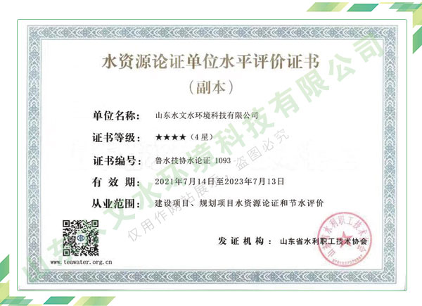 公司擁有水利工程設(shè)計(jì)、水土保持、水文水資源調(diào)查評(píng)價(jià)、水資源論證、建設(shè)項(xiàng)目環(huán)境影響評(píng)價(jià)、市政公用工程施工總承包、水利水電工程施工總承包、電子與智能化工程專業(yè)承包等資質(zhì),2017年通過質(zhì)量管理體系、環(huán)境管理體系、職業(yè)健康安全管理體系認(rèn)證;2020年被評(píng)為國(guó)家級(jí)高新技術(shù)企業(yè),同年被中國(guó)水利企業(yè)協(xié)會(huì)推薦為第一批“合同節(jié)水服務(wù)企業(yè)”;2021年被山東省、濟(jì)南市評(píng)為 “專精特新”中小企業(yè)。業(yè)務(wù)范圍涉及水利工程設(shè)計(jì);節(jié)水設(shè)計(jì)、改造、水平衡測(cè)試;山洪災(zāi)害調(diào)查;城市水資源調(diào)查評(píng)價(jià);建設(shè)項(xiàng)目水土保持方案編制、監(jiān)測(cè)、驗(yàn)收、水土保持規(guī)劃;水安全保障規(guī)劃、建設(shè)項(xiàng)目水資源論證、規(guī)劃水資源論證;建設(shè)項(xiàng)目環(huán)境影響評(píng)價(jià);入河排污口論證;防洪影響評(píng)價(jià);市政公用工程施工、水利水電工程施工、電子與智能化工程施工等。